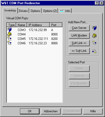 Avaa "COM port redirector" kuvake ja nyt voit valita Add New Port.., josta löytyy Com Server, LAN modem ja Soft Link. Valitse portti, jonka haluat ( tässä esimerkissä COM server).